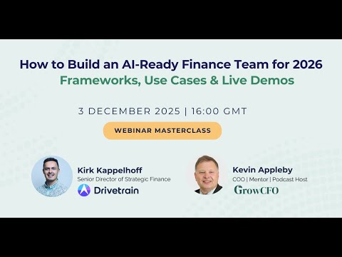 Featuring Kirk Kappelhoff, Senior Director of Strategic Finance at Drivetrain, and Kevin Appleby, COO and Podcast Host at GrowCFO, the discussion bridges strategy and execution. Attendees will learn how to identify high-ROI use cases, map skills to roles, and implement operating rhythms that compound AI benefits over time. With live demos and real examples, the session equips teams to move from experimentation to measurable impact across budgeting, variance analysis, and board reporting.